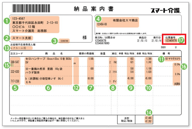納品案内書の右上に記載している、「伝票番号」をご用意ください。