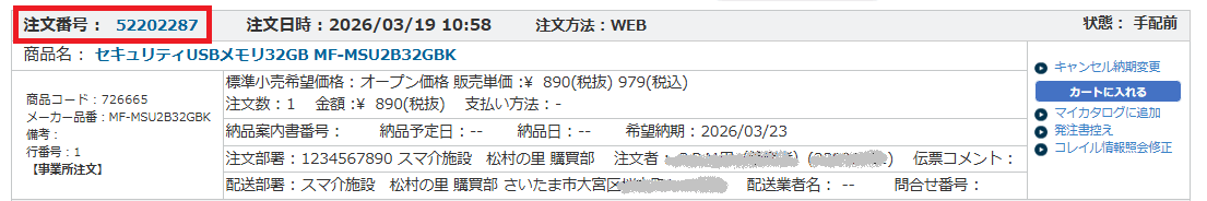 ご注文後のお問い合せの際は、注文番号や伝票番号をご準備ください。確認方法はこちら。
